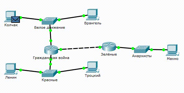 3.2. Данная сеть не работает, т.к. для объединения разных сетей нужен маршрутизатор